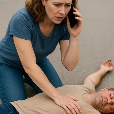 STAY ON THE LINE, ADMINISTER FIRST AID, STAY CALM.